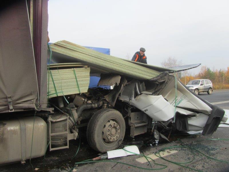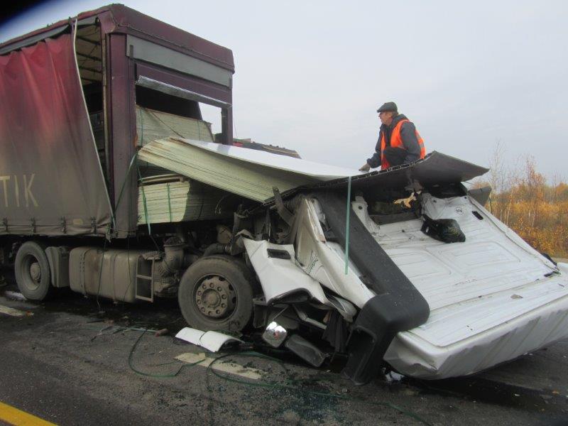 Но это обычный человек и частное авто. А вот новость из стана профессионалов - грузоперевозчиков. Причем такие ситуации, по информации страховщиков и экспертов, не единичны. 10 октября 2013 года, Россия, трасса Санкт-Петербург-Москва, в близи г. Вышней Волочёк, обычная фура, обычное ДСП в качестве груза, стандартное расположение и крепление в кузове, резкое торможение и... как результат - гибель водителя! На фотографии без ужаса смотреть невозможно...